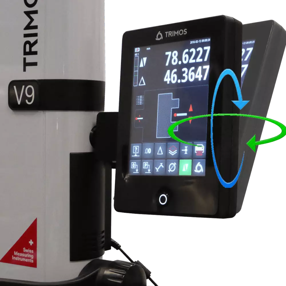 L’affichage basé sur une interface entièrement tactile offre un confort d’utilisation encore jamais atteint sur une colonne de mesure. Les menus et fonctions affichés respectent une philosophie et un design très stricts. Ils permettent ainsi une très grande efficacité de travail, même dans des tâches complexes comme la programmation, le mode 2D, les mesures d’angles ou l’analyse statistique des résultats.